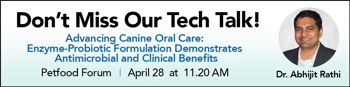 Ready to go deeper on the science? Researcher Dr. Abhijit Rathi is giving a Tech Talk at Petfood Forum that will dive into studies on Bactase Pet PB™. Come learn more, ask questions and discover what the research means for your formulations.